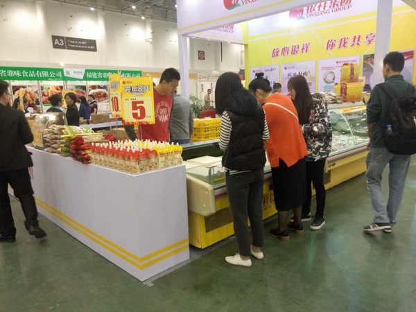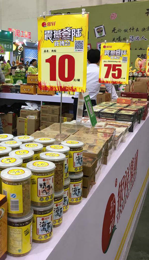 银祥作为中国肉类食品强势企业,拥有一条成熟、完善而资质强大的生产线。作为肉制品深加工生产线上的银祥肉松、姜母鸭、同安封肉、梅菜扣肉等菜肴系列单品美味,也受到了展客们的热捧!
