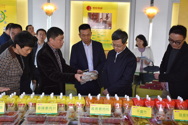 在集团领导的带领下,庄市长一行还参观了肉食品安全生产技术国家重点实验室。实验室常务副主任张志刚研究员向庄市长重点介绍了在食品安全产业链质量监控和把关方面的做法,并汇报了实验室在承担政府食品安全风险监测和风险评估方面取得的成效,以及产学研合作的创新模式。集美大学倪辉副院长向庄市长现场展示与银祥合作开发的传统酸浆豆腐研发进展。庄市长对肉食品安全生产技术国家重点实验室在食品安全源头把控、风险监测、风险评估和研发创新等方面的工作给予高度评价。