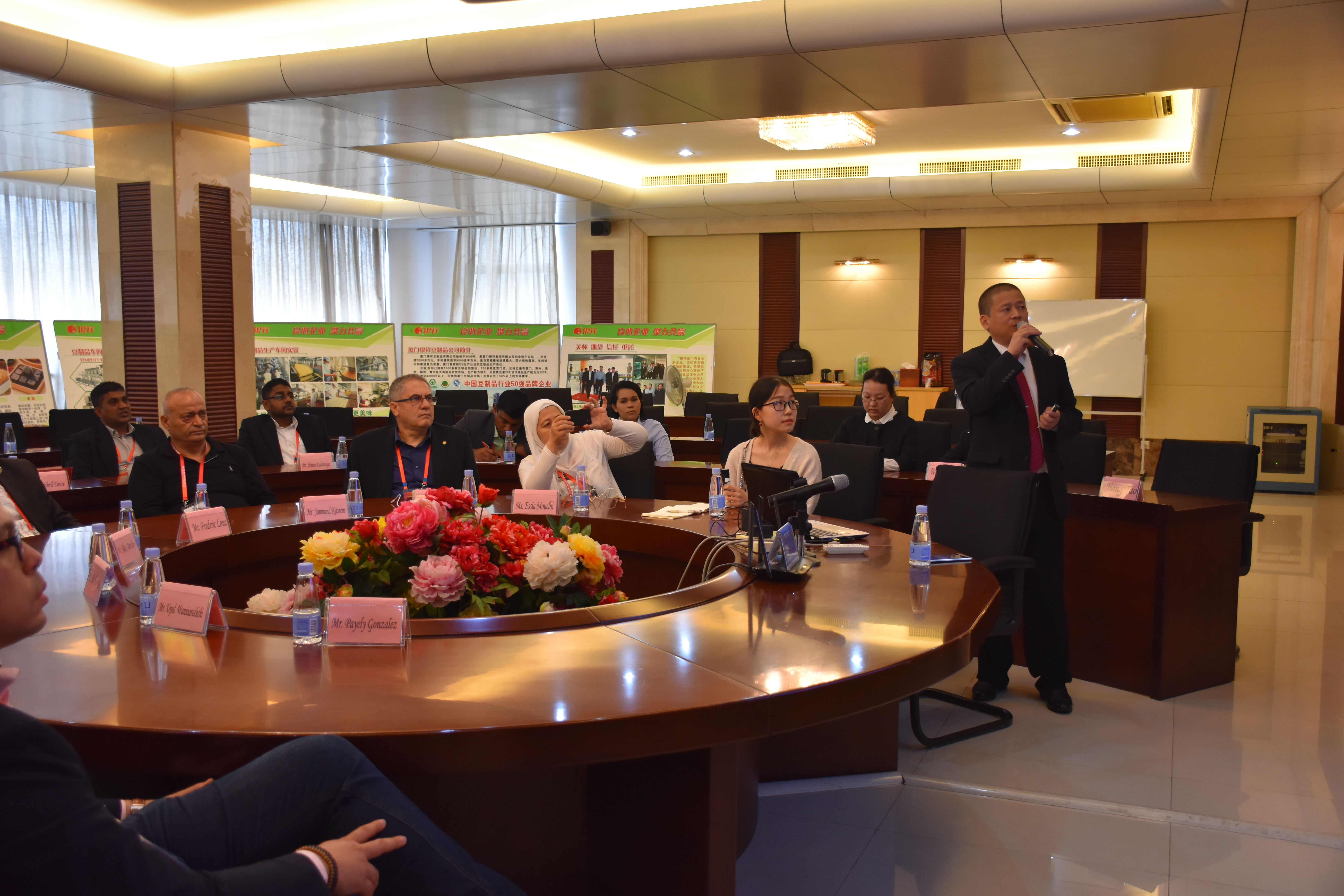 11月3日上午,《2018年海上丝绸之路国家海洋管理与蓝色经济发展部级研讨班》的各国部级官员在福建海洋研究所国际交流培训中心徐毅主任等领导的陪同下莅临厦门银祥集团参观考察。