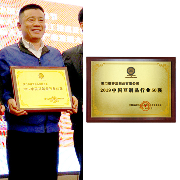 4月2日晚,2019中国豆制品行业“爱豆之夜——答谢晚宴暨50强表彰会”在长沙举行,来自全国豆制品相关行业的企业家、管理人员、技术人员、销售人员及各省、市及自治区各地方协会负责人汇集于此,共同出席此次盛会。厦门银祥豆制品有限公司荣获由中国食品工业协会豆制品专业委员会授予的“中国豆制品行业50强”称号。
