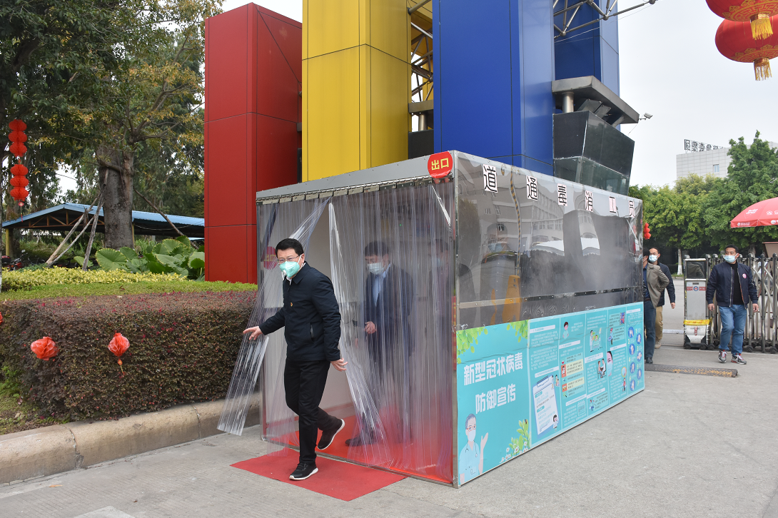 黄燕添副市长等领导一行依照体温测量,人员消毒通道的管控措施进入园区。现场了解集团人员出入与排查、人员与场所消杀、食堂宿舍等重点区域、紧急处理与报告、员工宣传与疏导、督导与检查等一系列防控工作落实情况。