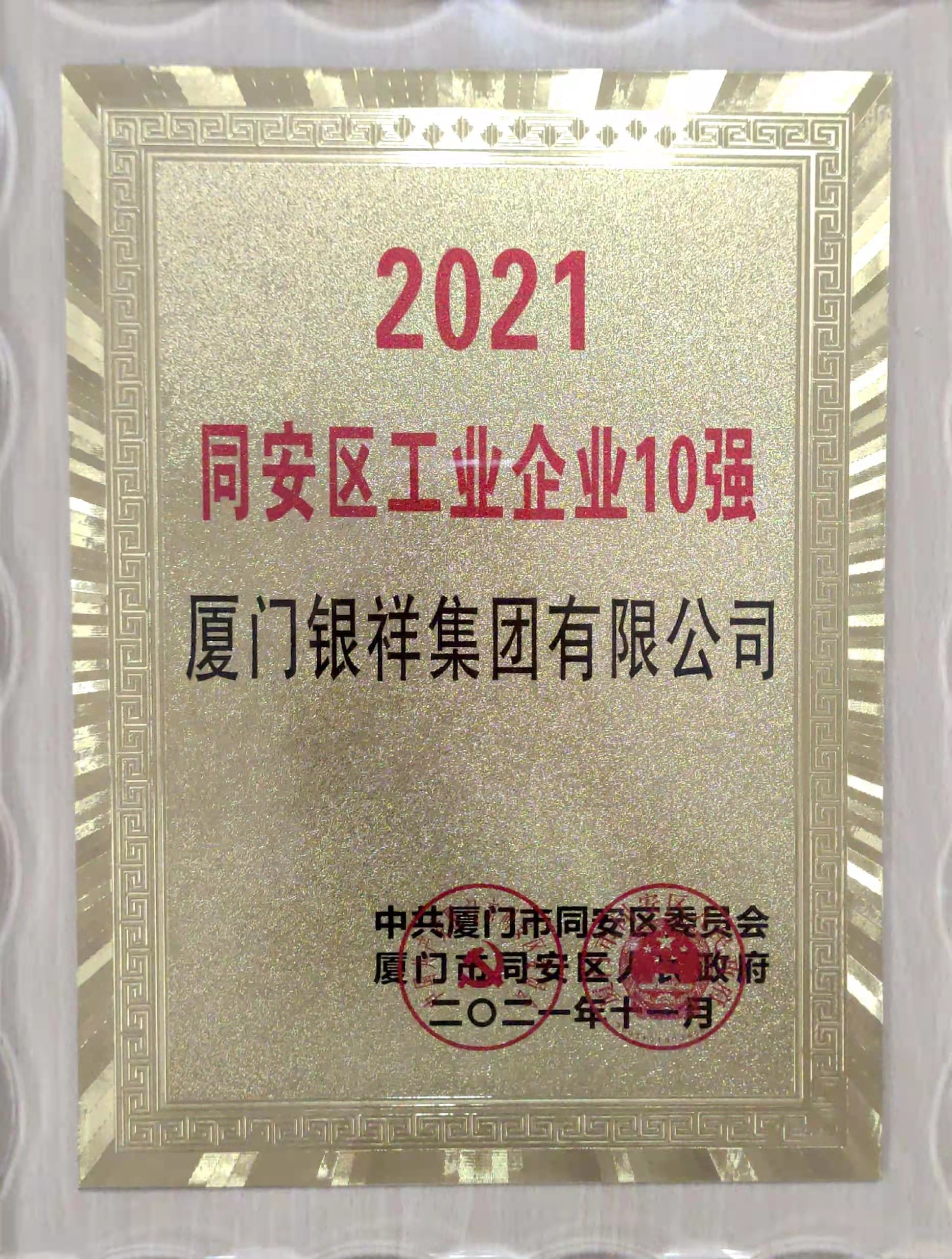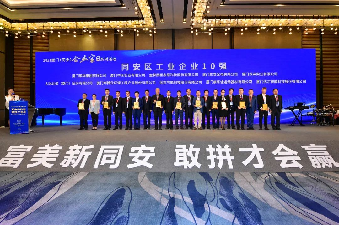 在座谈会现场,同安区负责人和多位企业家们面对面交流,广泛听取大家的意见建议。会上,2021年同安区企业各行业10强榜单发布,区委区政府分别向全区工业、商贸、外资、“三高”、民营和建筑业六大领域10强授牌。银祥集团荣获同安区工业企业10强奖牌,据悉,这是同安区首次发布相关领域企业十强榜单。