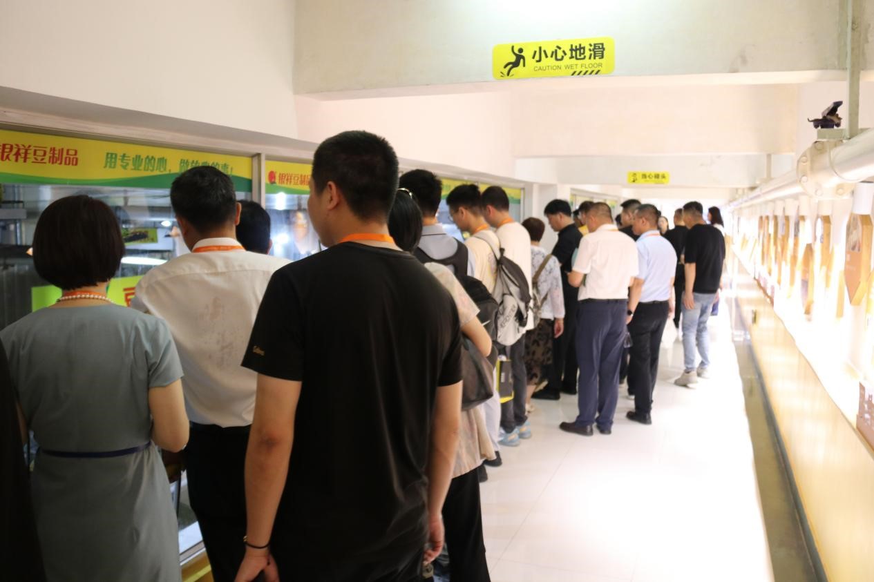 6月9日,企业代表们来到银祥工业园,先后参观了产品展厅、豆制品生产车间、腐竹二期车间、银祥豆制品文化长廊、油脂生产线、肉品生产线、国家重点实验室等处,并就冰鲜豆腐、三鲜腐竹、氮气锁鲜包装、豆制品预制菜、冷链物流、生产装备、市场渠道、大豆原料、豆渣等副产品的去向、班组管理、产品开发等话题与企业相关负责人进行了交流探讨。
