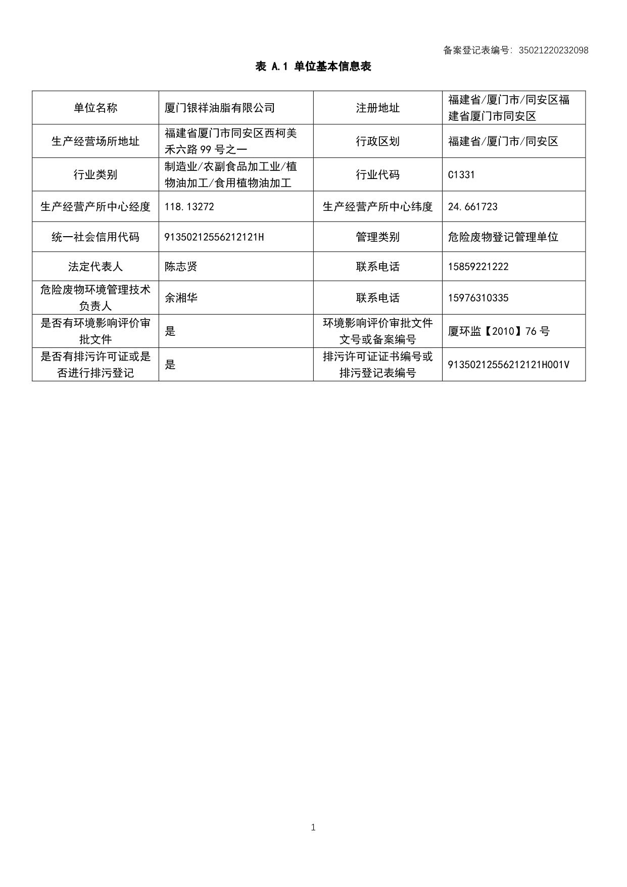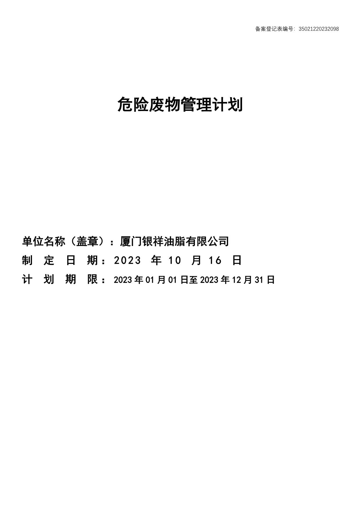 2023年危险废物污染环境防治信息公示——“银祥油脂危险废物管理计划”