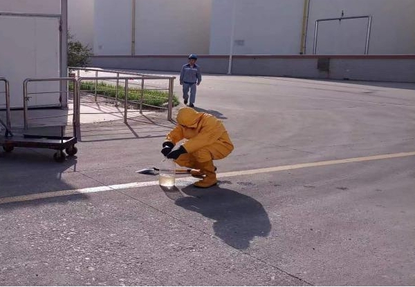2023年4月17日,我司模拟品管部人员在转运废有机溶剂时,于危废仓库旁转弯处因骑行电动车拉动装有危废的平板推车过快导致废有机溶剂翻倒泄漏事故,公司马上启动危废品泄露应急处置机制。